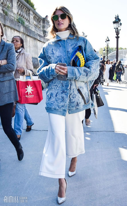 高手进阶:刺绣、拼贴自带街拍焦点除了保守的基础款、率性的廓型丹宁夹克之外,如今从秀场火到街拍,乃至平时的穿搭中,刺绣拼贴的丹宁夹克随处可见便能看出这件单品能再火5年的势头!