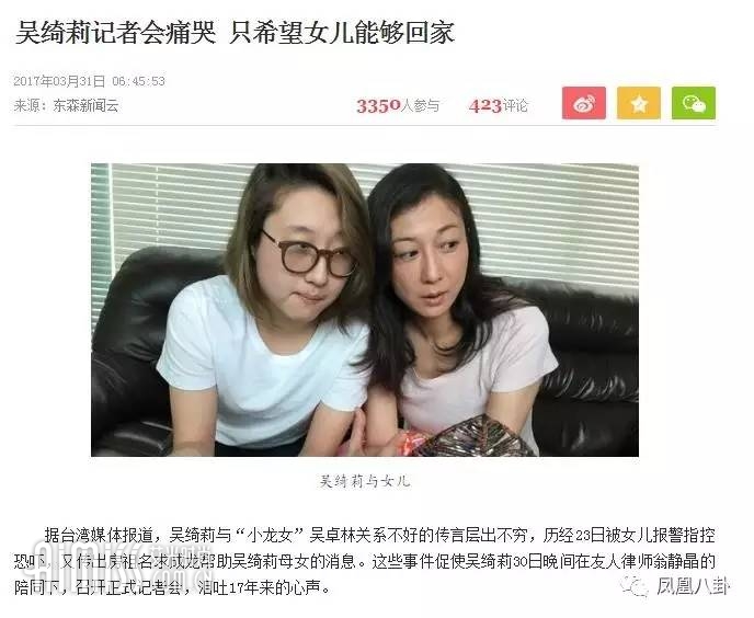 事后小龙女说是不忍心看母亲整日酗酒,吴绮莉也在节目中,双眼泛泪忏悔自己没有给女儿带来安全感。