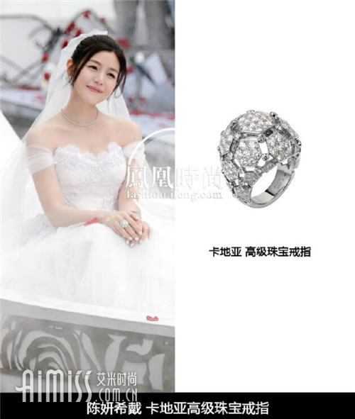 导语:陈妍希陈晓于7月19日在北京雁 西湖 举办了婚礼,俩人分别穿了中式和西式两套礼服,为配合不同的礼服,陈妍希搭配了两种不同风格的珠宝。中式礼服搭配黄金饰品,西式婚纱和敬酒小礼服则选择了钻饰,每套珠宝都漂亮又奢华,让人羡慕!