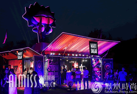 正对舞台对面的玛丽黛佳快闪店吸引了不少个性派、爱美的时尚潮流人士。